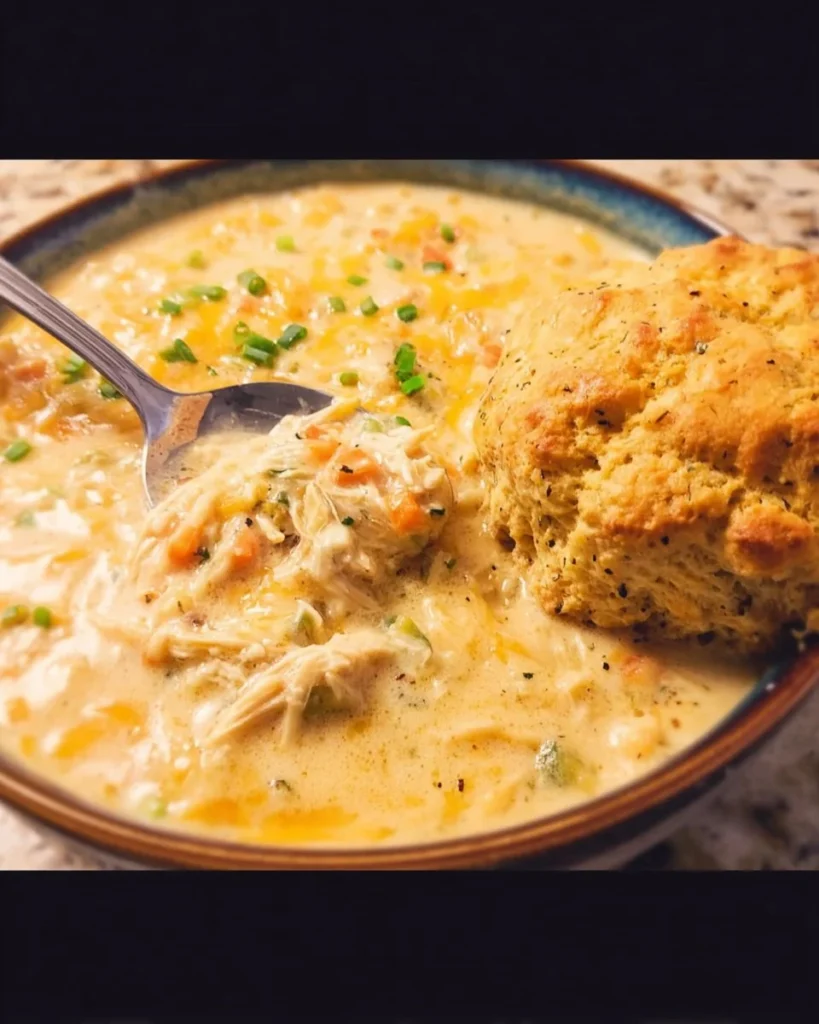 Why You’ll Love This Creamy Chicken Soup with Cheddar Biscuit Topping