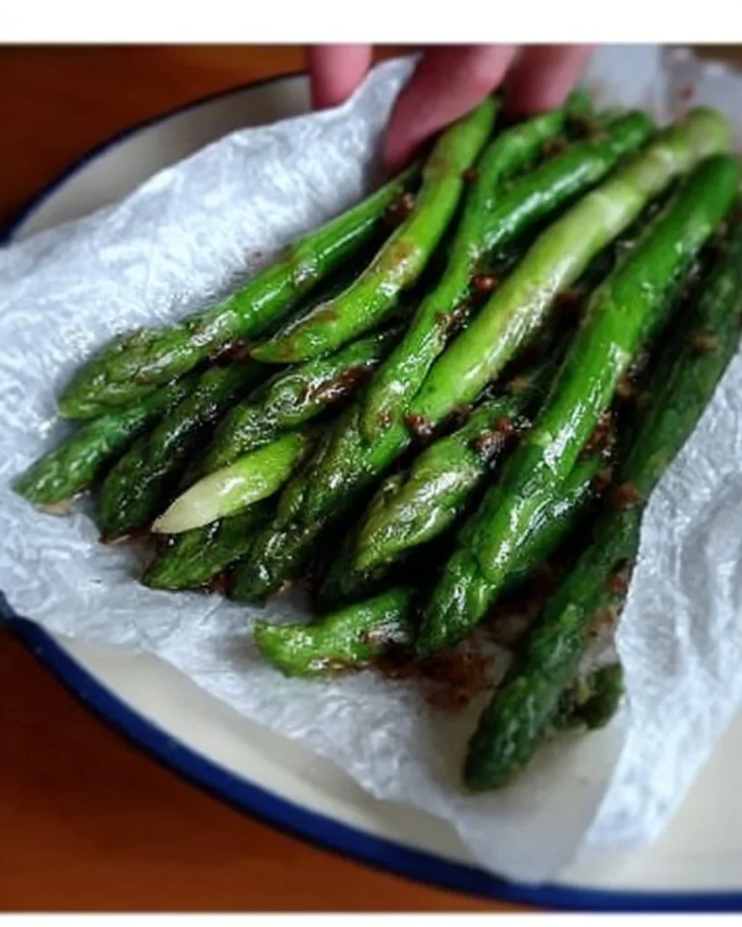 - Add the asparagus or green beans to the pan. Sauté for about 5-7 minutes until they are tender but still crisp.