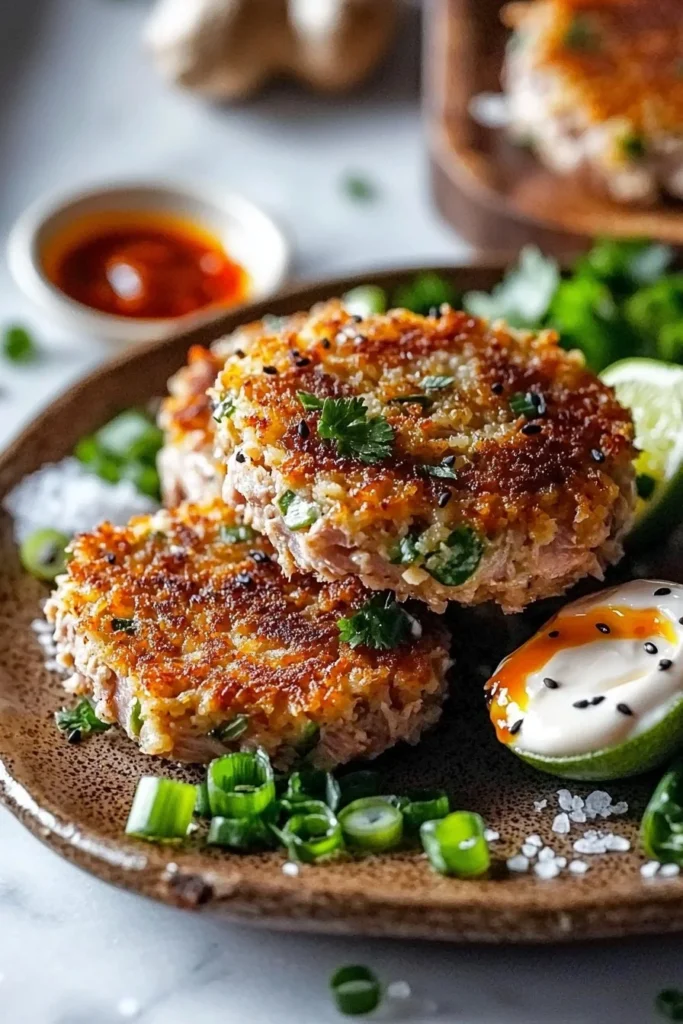 For substitutions, chopped cilantro or parsley can be used in place of green onions. For a gluten-free version, substitute panko breadcrumbs with crushed cornflakes or gluten-free breadcrumbs. Let the mixture sit for about 10 minutes before shaping for better binding. Avoid overcrowding the pan while frying to maintain oil temperature.