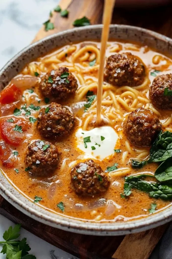 - Allow the soup to simmer for about 20 minutes, stirring occasionally, until meatballs are cooked through and flavors meld.