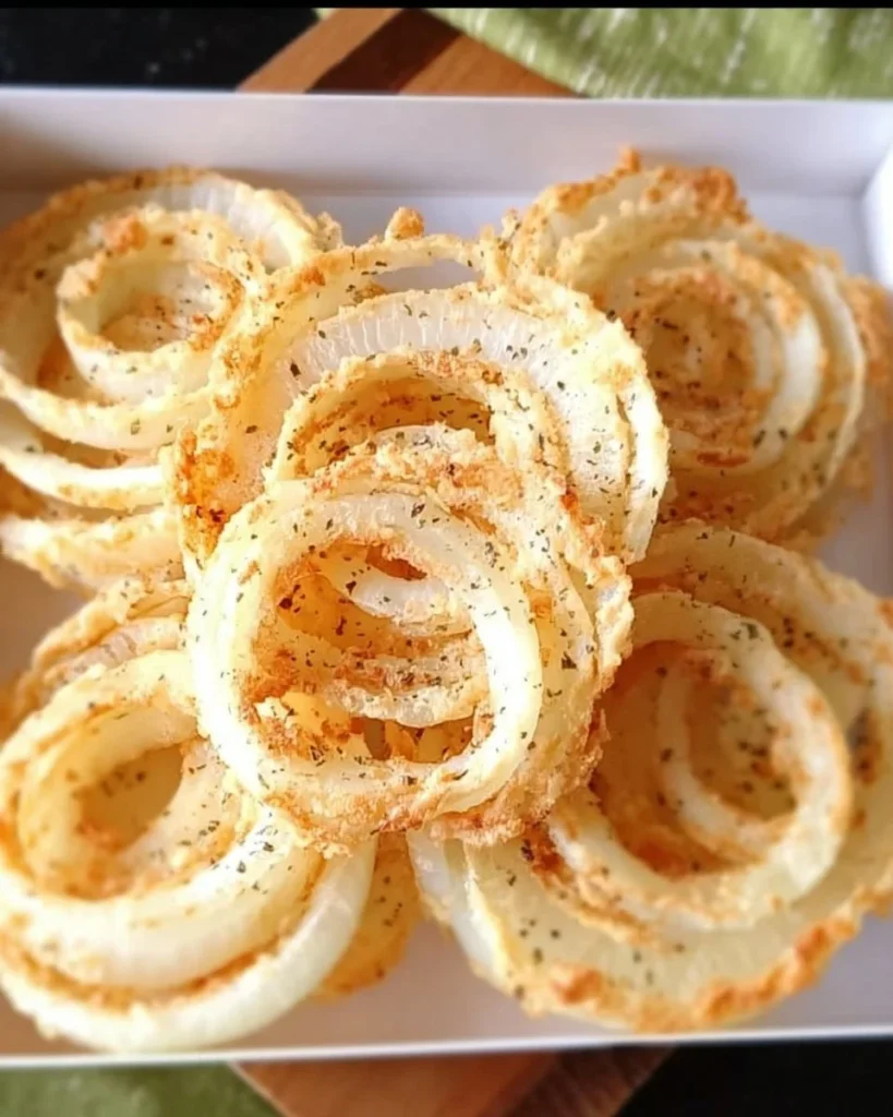 - Carefully place breaded onion rings in hot oil in batches, frying for about 2-3 minutes until golden brown and crispy.