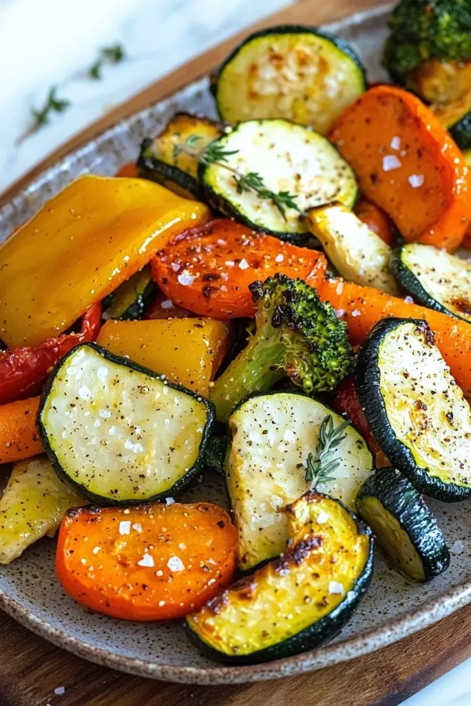 - Season: In a large bowl, combine the veggies with olive oil, salt, pepper, garlic powder, and herbs of your choice. Toss well until everything is nicely coated.