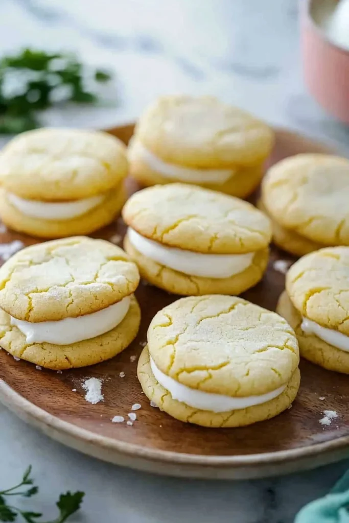 - Once the cookies are completely cool, spread a generous amount of filling on the flat side of one cookie, then top with another cookie to create a sandwich.