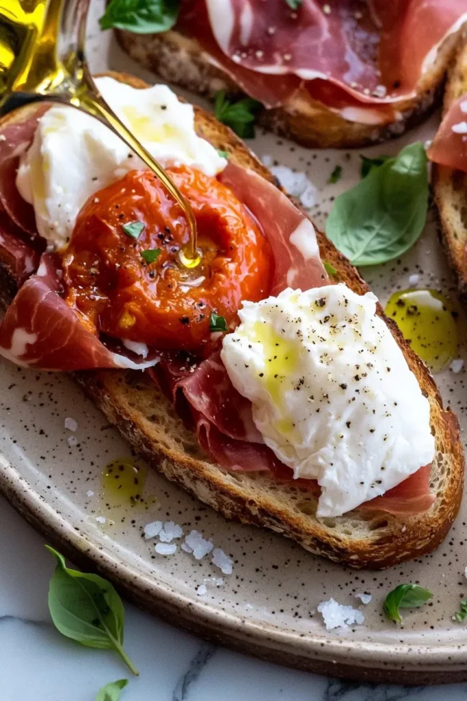 Substitutions: If you can’t find burrata, feel free to use fresh mozzarella or even whipped cream cheese for a creamy texture. Make sure to let the tomatoes roast sufficiently for that caramelized flavor.